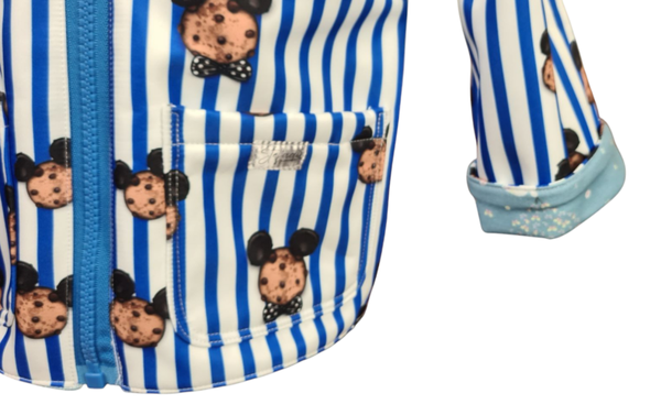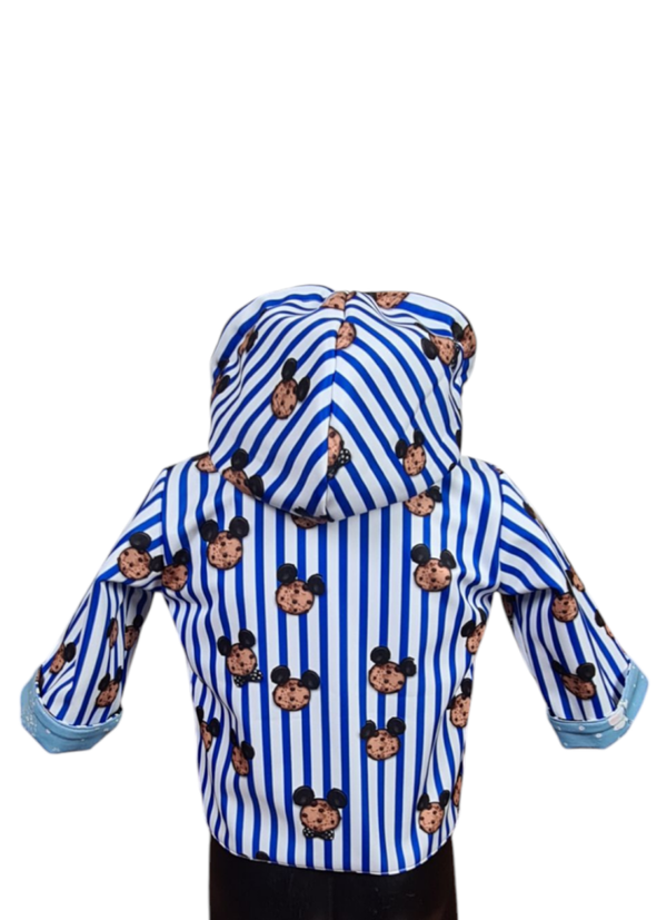 Der Umschlag am Ärmel ist nicht fest genäht zum Mitwachsen.(An der Länge könnte bei Bedarf ein Bündchen zur verlängerung angesetzt werden. Könnte gegen kleinen Preis bei mir dann in Auftrag gegeben werden.)