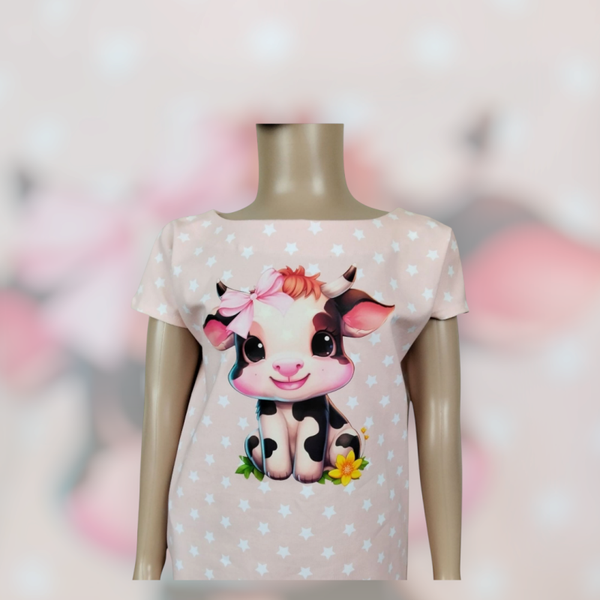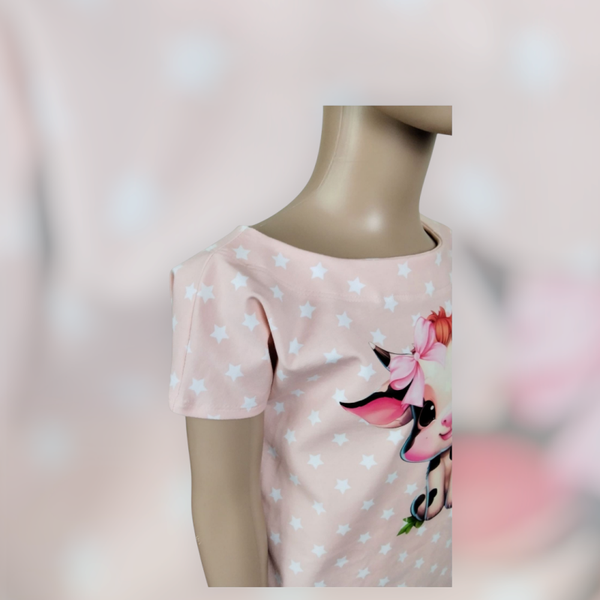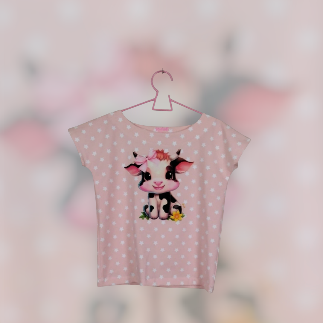 - Rosa mit weißen Sternen und einen Bügelbild ein Kuhbaby