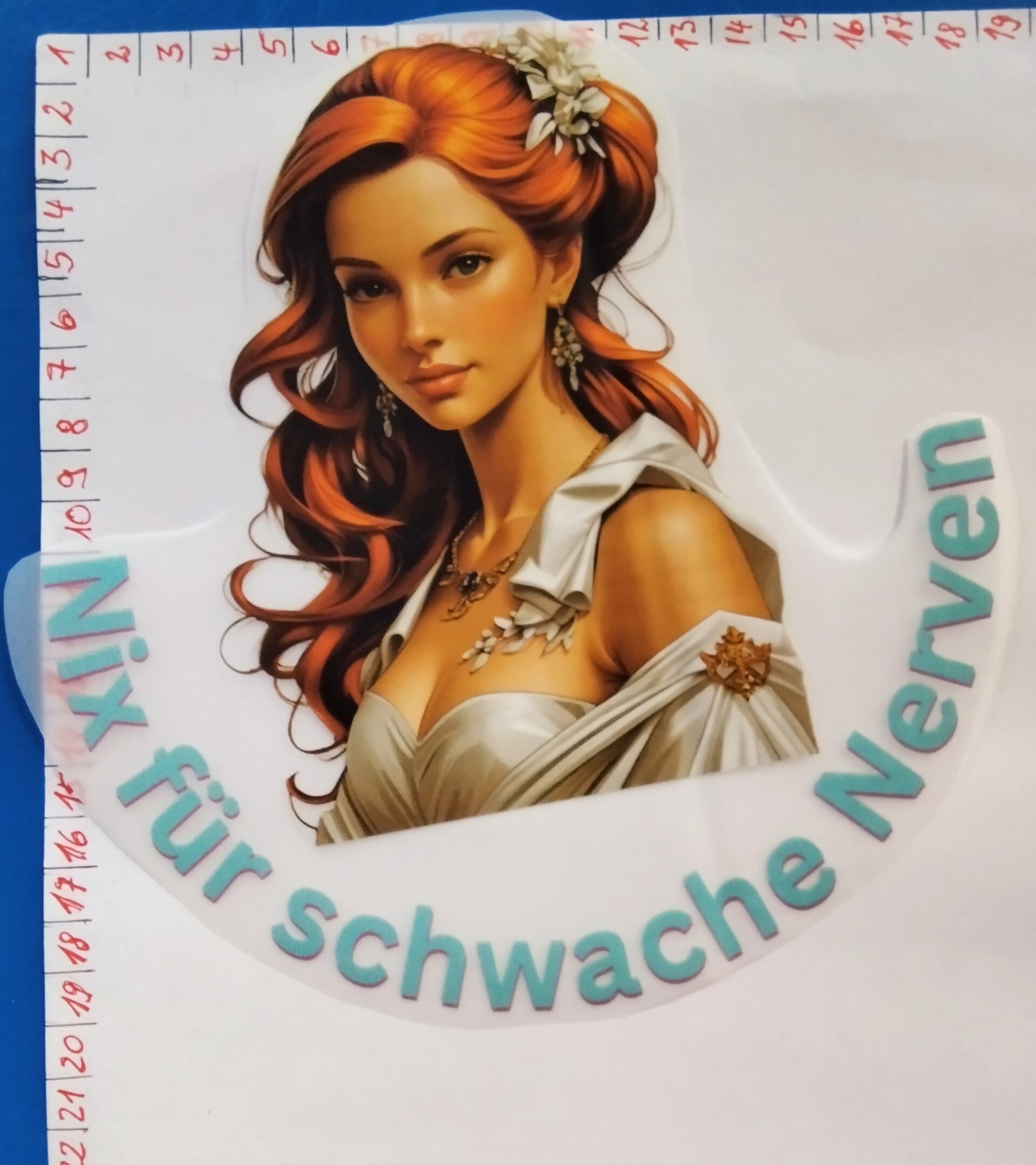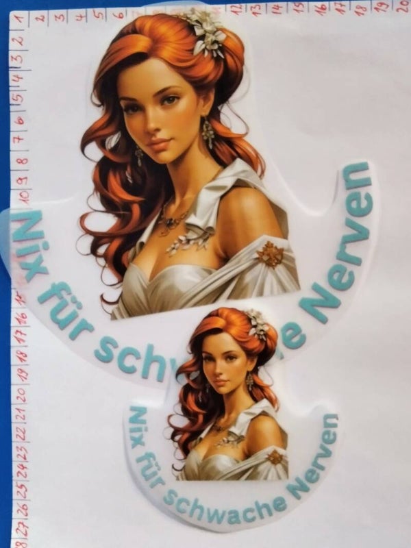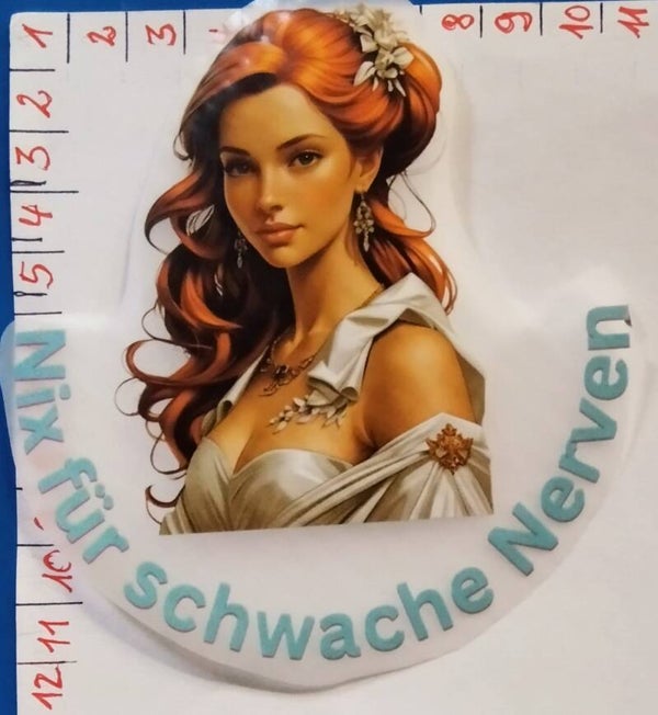 Bügelbilder verschiedene Größen * Frau mit Spruch -Nix für schwache Nerven*