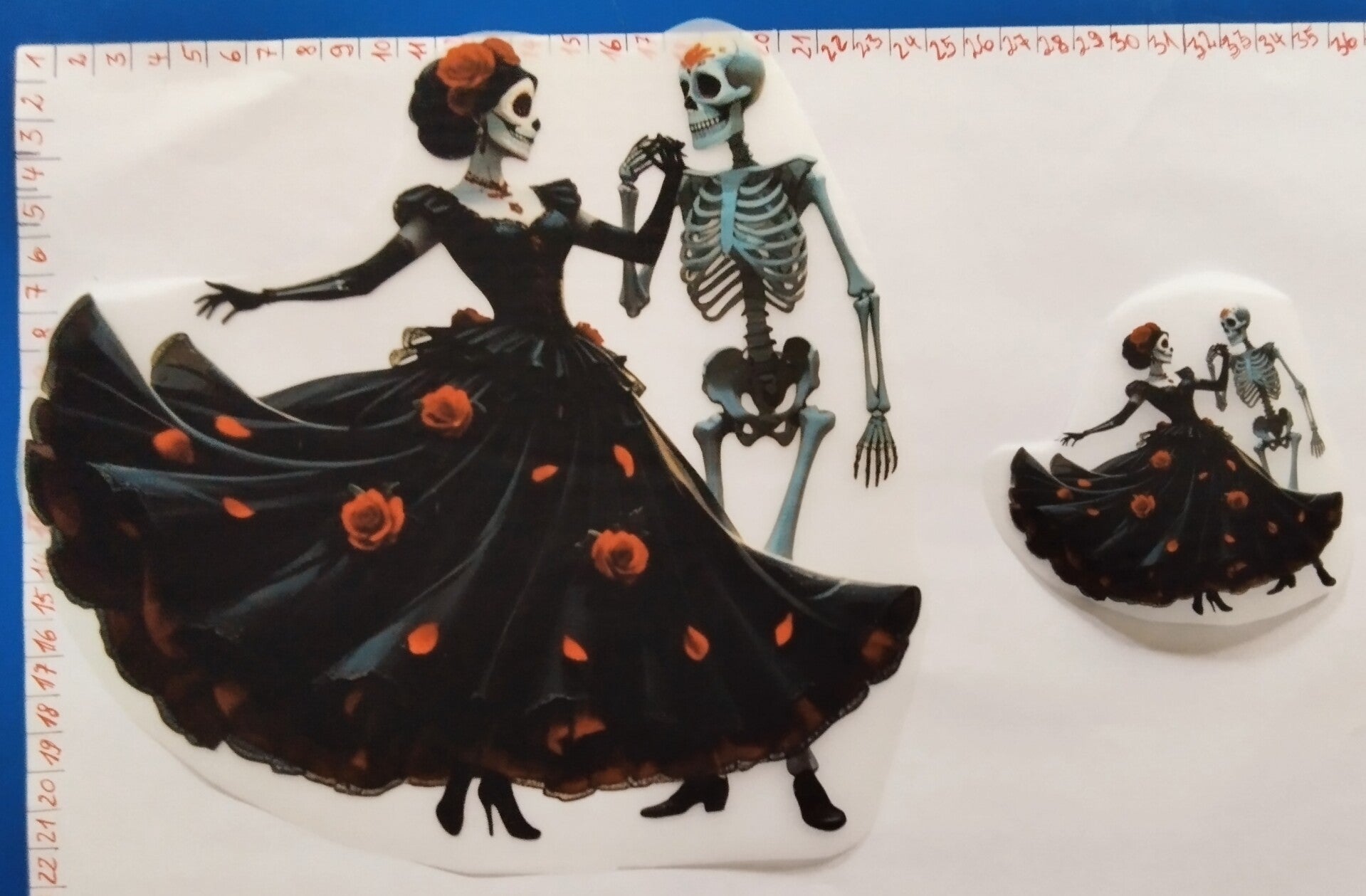 Bügelbilder verschiedene Größen * los Muertos Tanz mit dem Tod * schwarz + Rosen 🌹