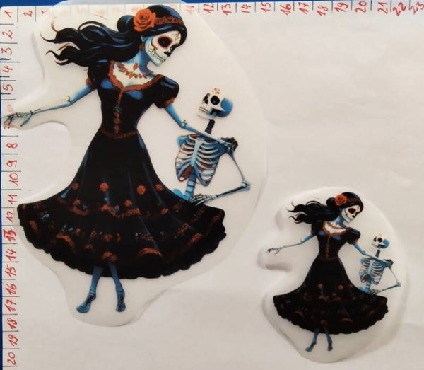 Bügelbilder verschiedene Größen*Los Muertos Tanz mit dem Tod* schwarz