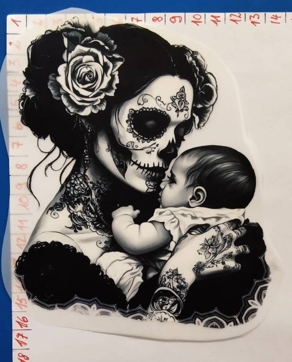 Bügelbild kann mit handpresse oder Bügeleisen auf das Produkt aufgebügelt werden...
