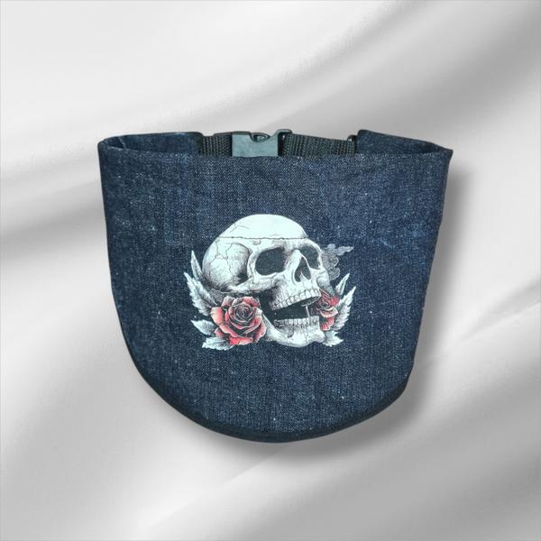 Hier habe ich Hundehalsbänder aus Gurtband gearbeitet mit einen Tuch aus Jeans mit einem Bügelbild.Die Kanten habe ich mit schwarzen elastigband abgenäht.