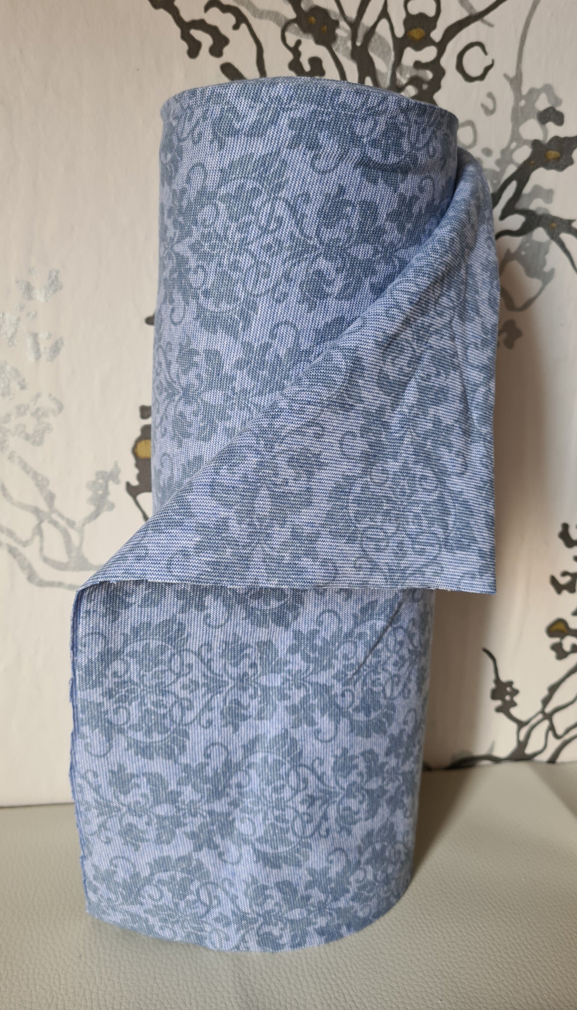Bündchen Schlauchware Jeansblau Vintagemuster , 35cm