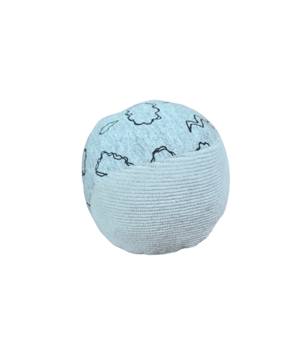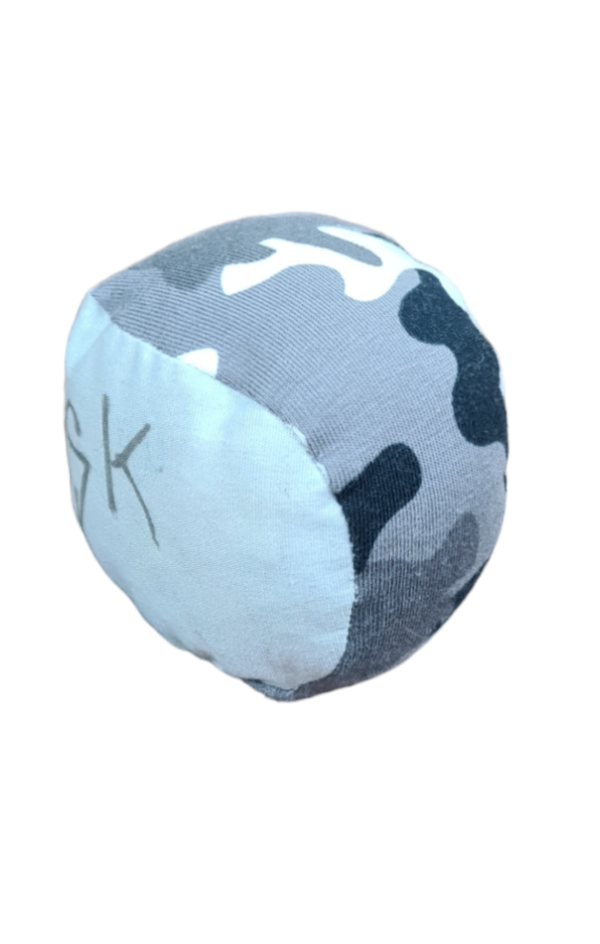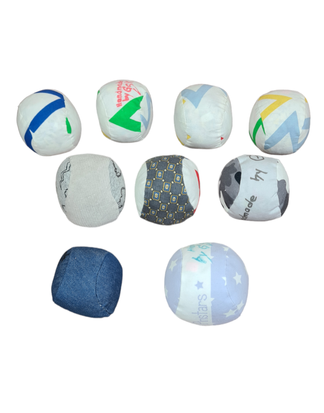 Die Balle sind mit Stoffrestre gefüllt die ich klein geschnitten habe.Vorteil bei ständigem waschen oder häufigen waschen kein verklumpen.
