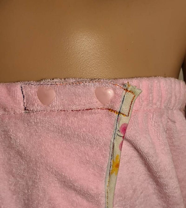 Modell 1 : Rosa Frottee mit 2 Rosa Herzchen Druckknöpfe
