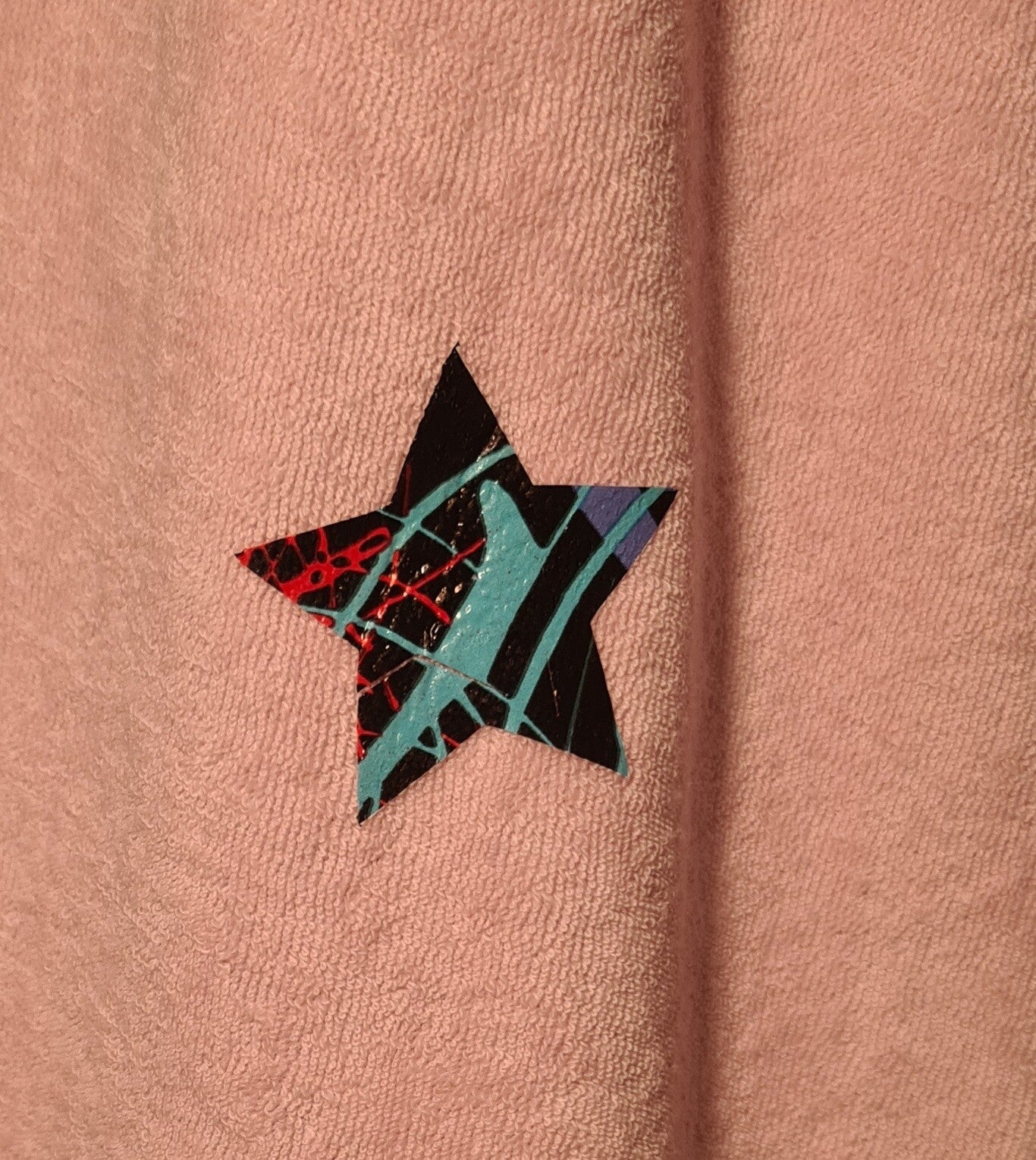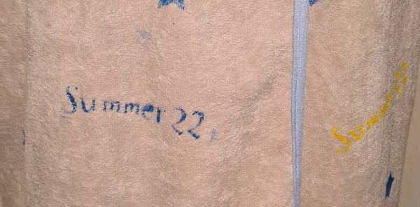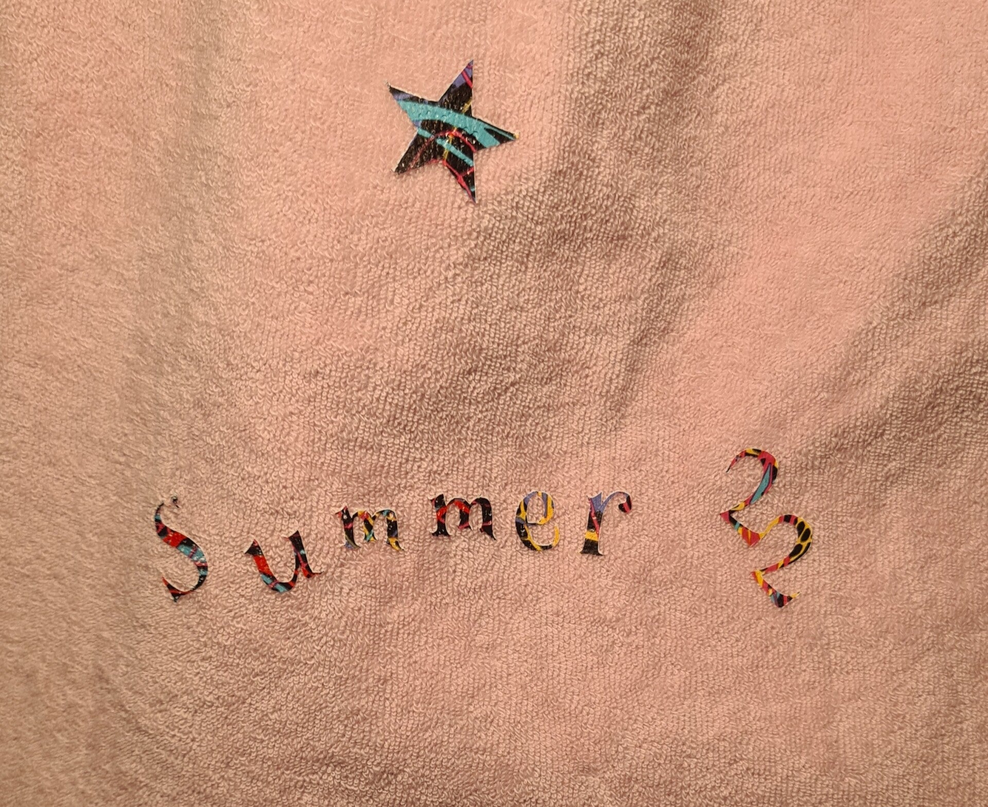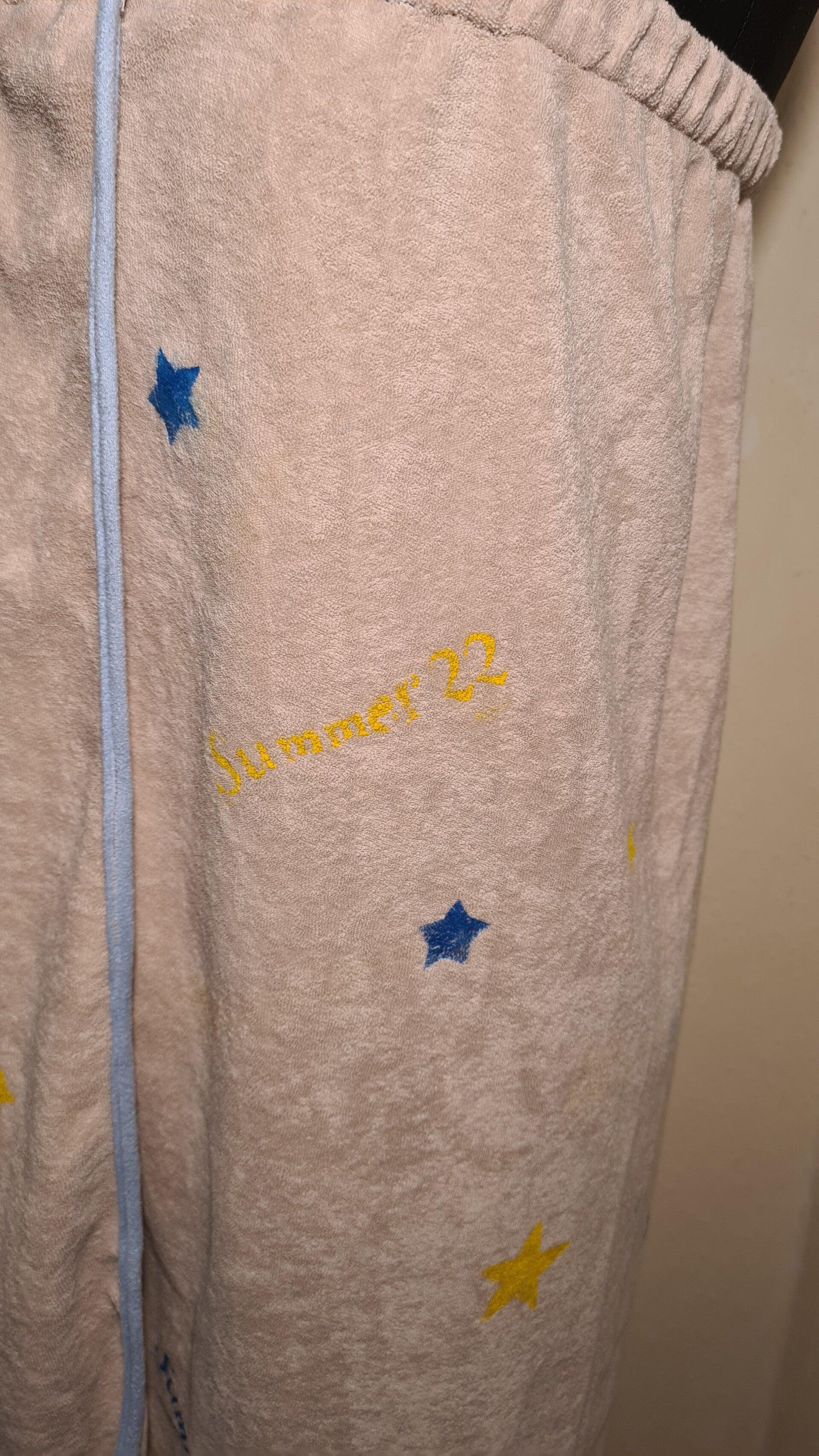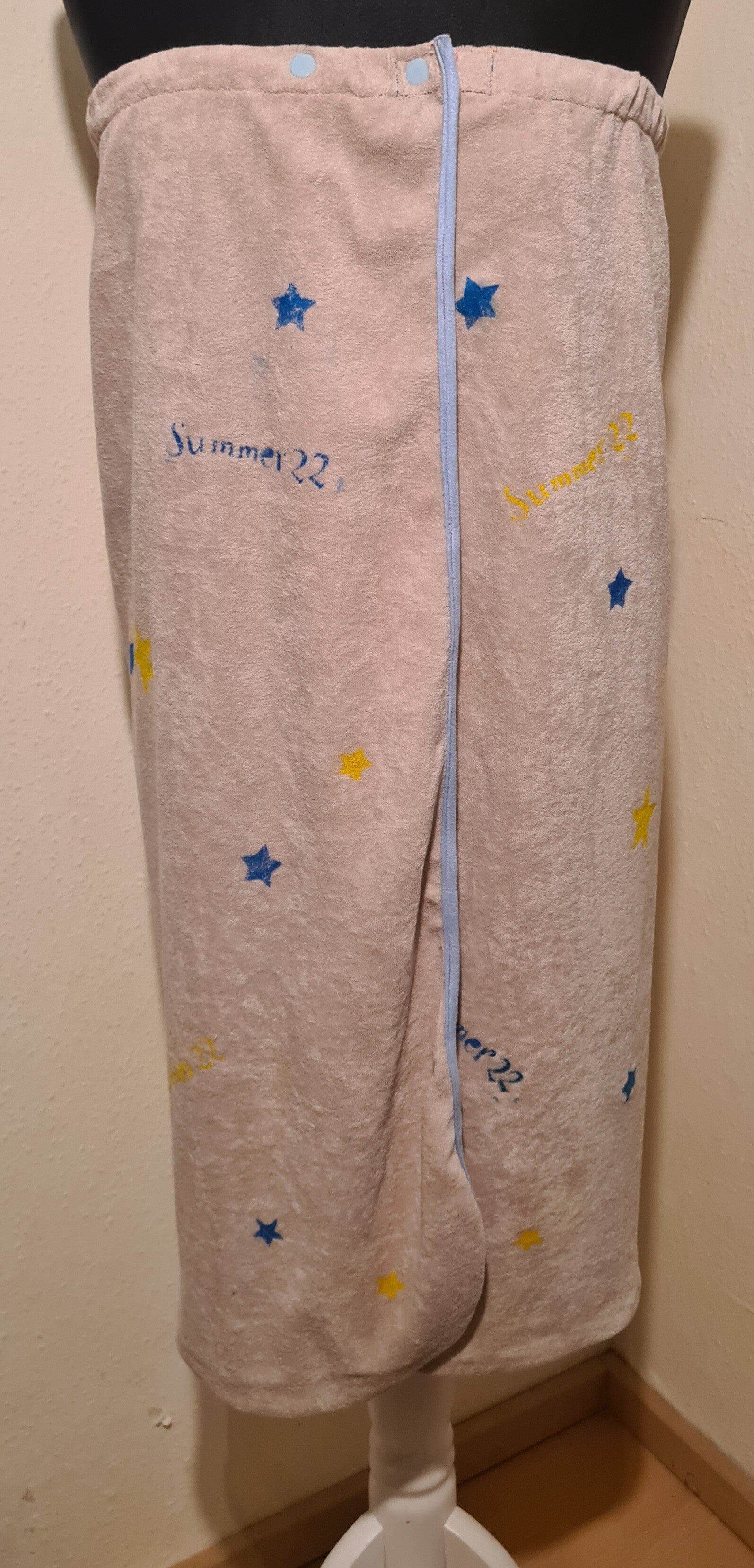 Modell 2 : Hellbeiger Frottee Motiv Stempeldruck Gelb & Blaue Sterne & Summer 22
