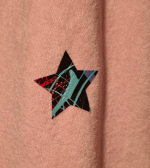 Modell 4 : Hellrosa Frottee Motiv Stempeldruck Sterne & Kleblätter, 2x pinke Druckknöpfe