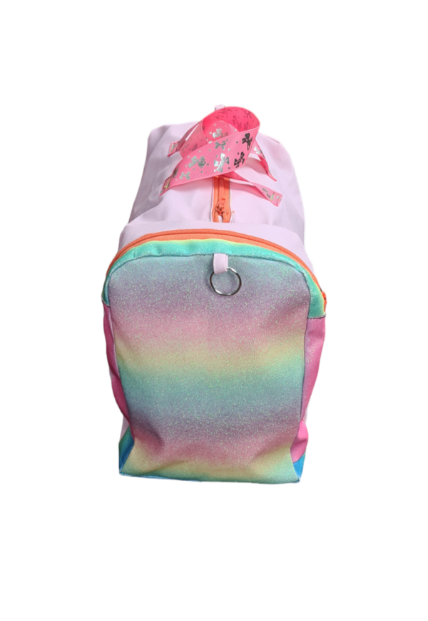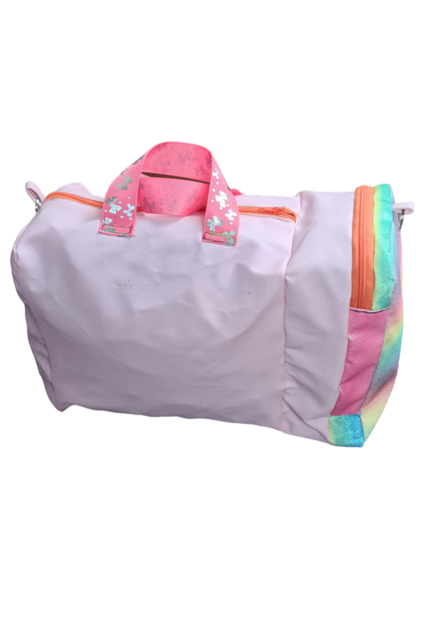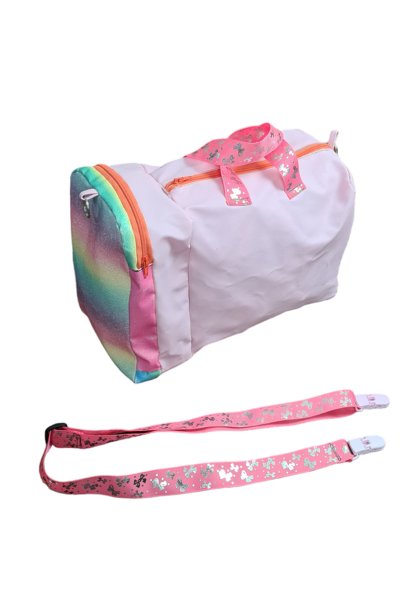 Rosa Schwimmtasche / Tasche mit 2 Bereiche, ein Kleiner Bereich vorne mit Bunten Kunstleder mit Reißverschluss zu schließen.